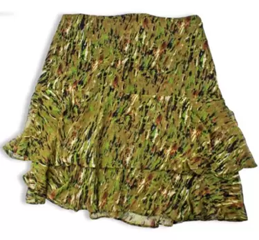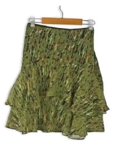 Falda verde de seda con olanes Talla 4. Falda verde de seda con olanes talla 4 súper linda fresca e ideal para hacer todo tipo de styling, perfecta para primavera verano.