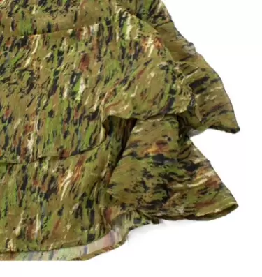 Falda verde de seda con olanes Talla 4