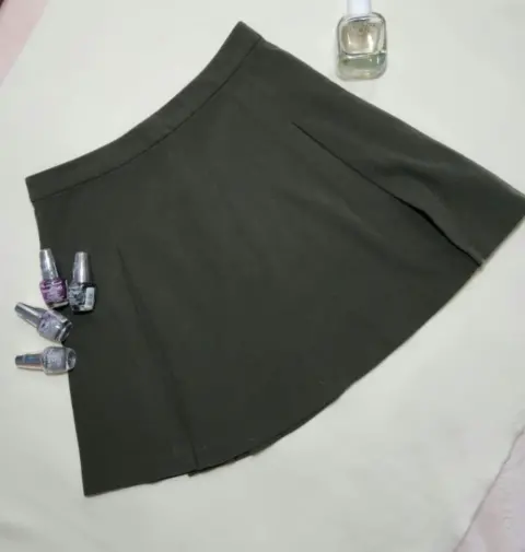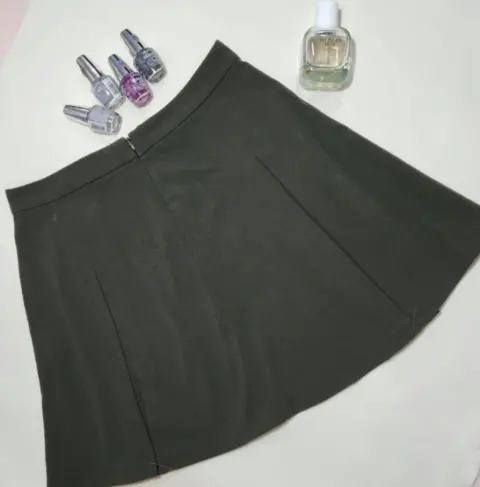 Falda forever 21 verde oliva Talla S pero viene amplia queda hasta M, con cierre a un costado. Es de tela gruesa tiene una caida muy bonita, en serio es súper femenina. Las fotos no le hacen justicia Largo: 21 cmCintura: 73 - 80 cmSin detalles.