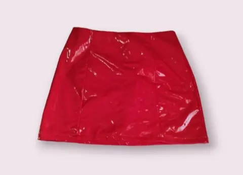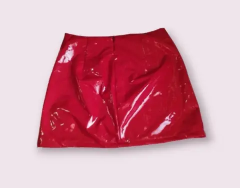 Falda de vinil color rojo talla L, Cintura 80cm, cadera 100cm y 40 cm de largo en perfectas condiciones. Es Nueva