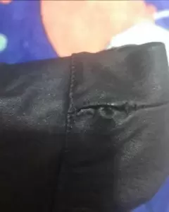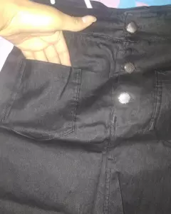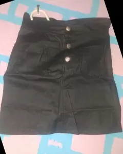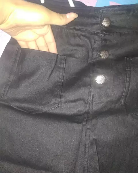 Falda vinipiel negra. Un pequeño detallito en fotoPerfecta para una talla chica. Dos bolsas delanteras y botones