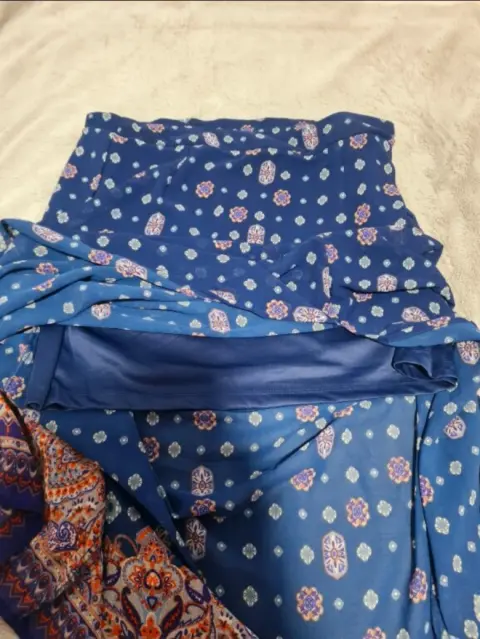 Falda vintage. FrescaLigeraViene con una falda corta de fondo para evitar transparenciasCon apertura a un costadoCon resorte en la parte trasera de la cinturaCintura 42cmCadera 51cmLargo 103cm