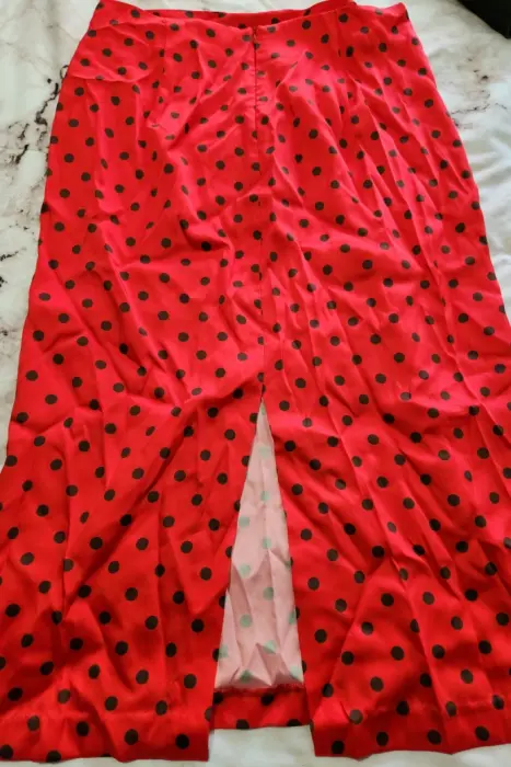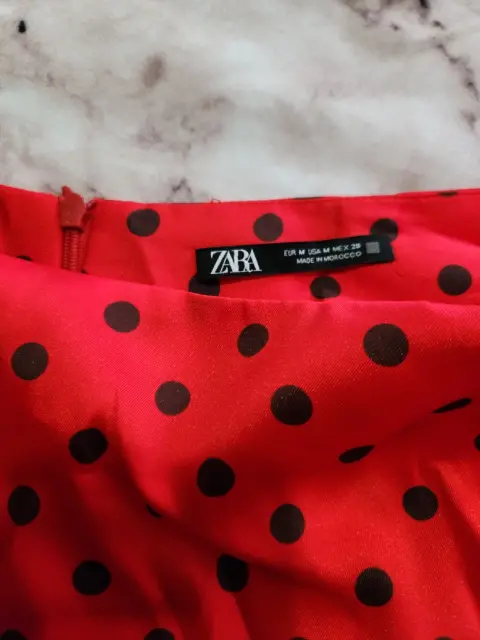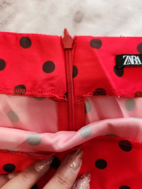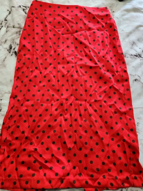 Falda zara satinada midi lunares rojos y negros. Talla M.Abertura trasera y cierre trasero.