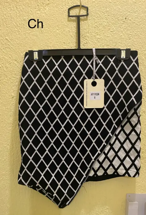 Falda con corte triángulo, color negro con vivos blancos, prenda nueva