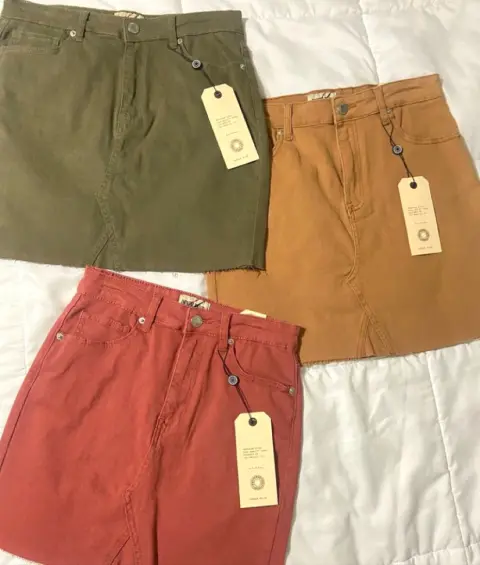 Faldas Levi’s super stretch con bolsas enfrente y atrás.- Rojo wash talla S- Verde olivo y color arcilla talla L
