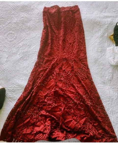 Falda color vino, encuentra la sensualidad que estás buscando en esta hermosa falda de encaje, cuenta con una parte de abajo que deja a la imaginación unas hermosas piernas al entre asomarse en los encajes y por arriba te cubre con el forro interno.No lo pienses más. No tiene ningún detalle estético, en perfectas condiciones.