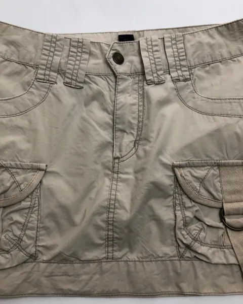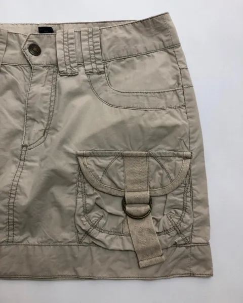 Faldita beige explorer. Minifalda en tela de gabardina, con bolsas estilo baggy, de American Eagle.