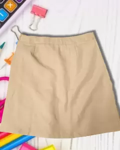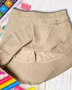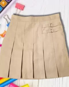French Toast falda escolar de niña, talla 14-R, color azul marino con un detalle de doble hebilla y pantalones cortos suaves incorporados, cae por encima de la rodilla, heha de 100 % poliéster 50 Resistente al lavado y a la decoloración. cintura ajustable para un ajuste perfecto. detalle de lengüeta decorativa con hebilla plateada brillante. parte delantera plisada, y pantaloncillo corto de punto para mayor comodidad, nuevos a estrenar.