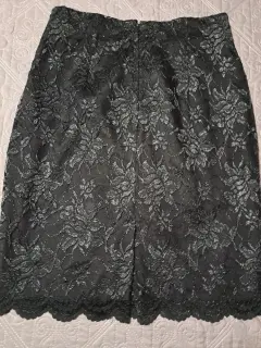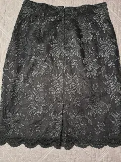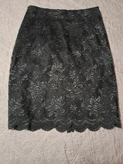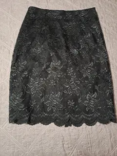 Hermosa falda negra de encaje para Dama, forrada por dentro, en buenas condiciones cierre parte trasera y abertura en la parte trasera, esperando una segunda oportunidad.