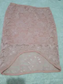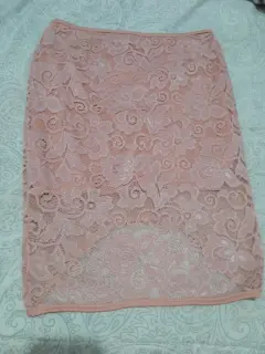 Hermosa falda corta de encaje color rosa. Falda corta con forro, más corta de adelante que de atrás, de encaje. Largo 40 de enfrente.
