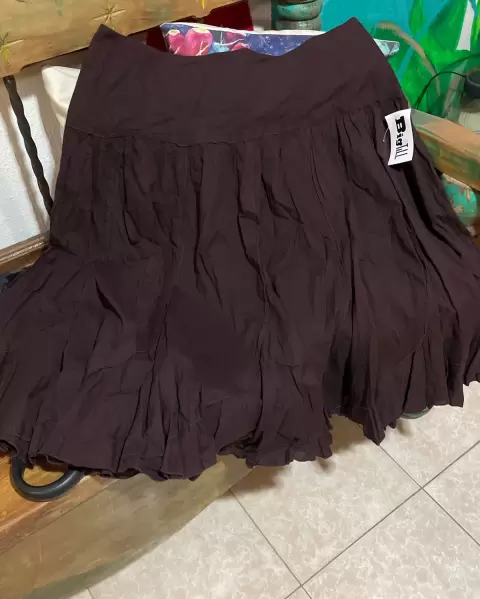 Hermosa falda en color café. Hermosa falda ideal para un look moderno, la medida de el largo es de 78 cm y la cintura de 98 cm, te está esperando !