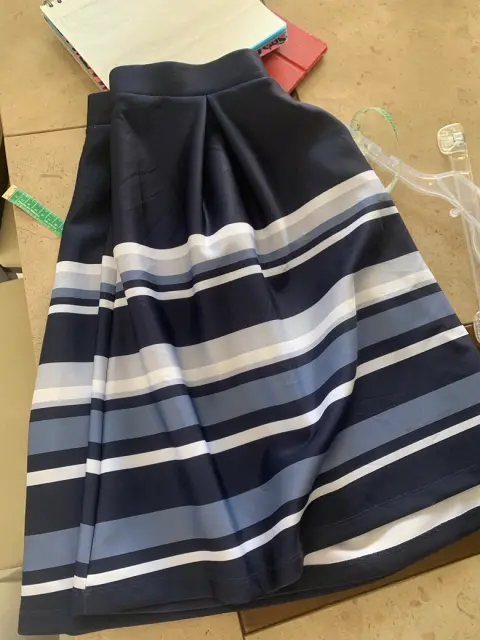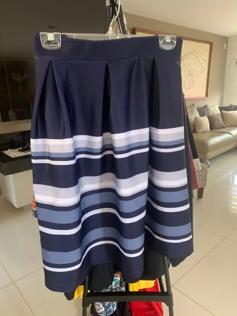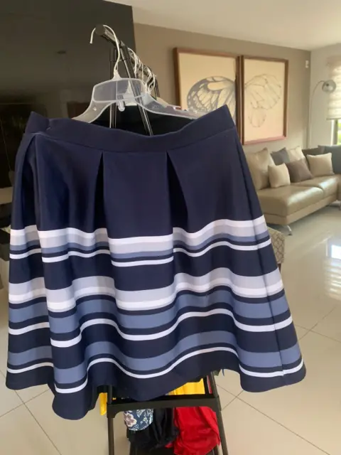 Cato falda con tela tipo satinada a rayas talla XL., tela gruesa con hermosa caída y difícil de arrugarse, medidasCintura 49 cm y largo 60Muy bonita tela con caída , amplia , da a una talla XL y 1XL, está en súper estado, sin detalles.