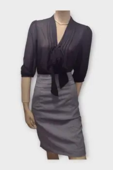 H&M Falda Dama Polyester Gris S 6Hermosa falda H&M 64% Polyester 34% Viscosa 2% Elastano en color grisMarca: H&MOrigen: ChinaMaterial: 64% Polyester 34% Viscosa 2% ElastanoTalla: S - 6Estilo: CasualPatrón: LápizColor: GrisCierre: Cremallera y BotónCintura: 34 cmCadera: 44 cmLargo: 57 cmTiro: AltoRopa de USO en muy buen estado
