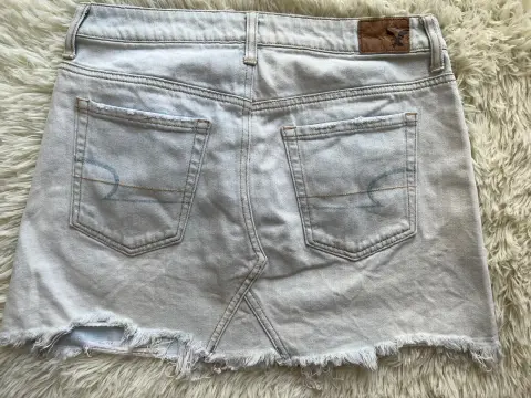 Bonita falda de mezclilla clara, con bolsas enfrente y atrás. Es de botones talla 4 , en perfecto estado sin detalles