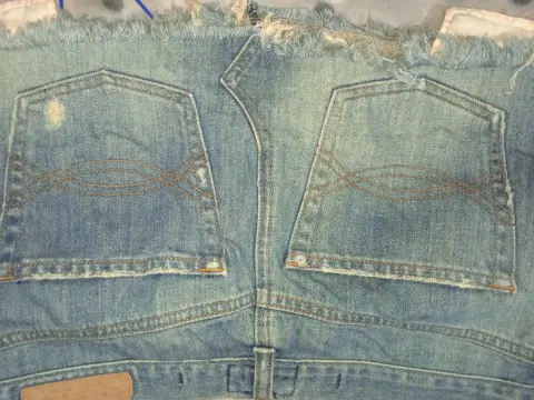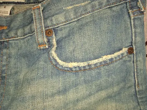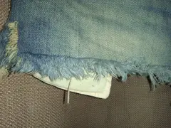 Falda de mezclilla con deshilado en la parte de abajo, bolsas delanteras y traseras, cierre y botón funcionando al 100