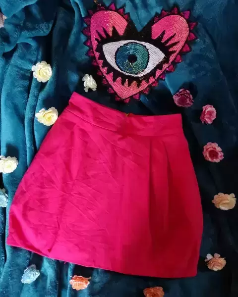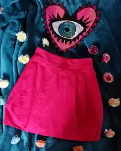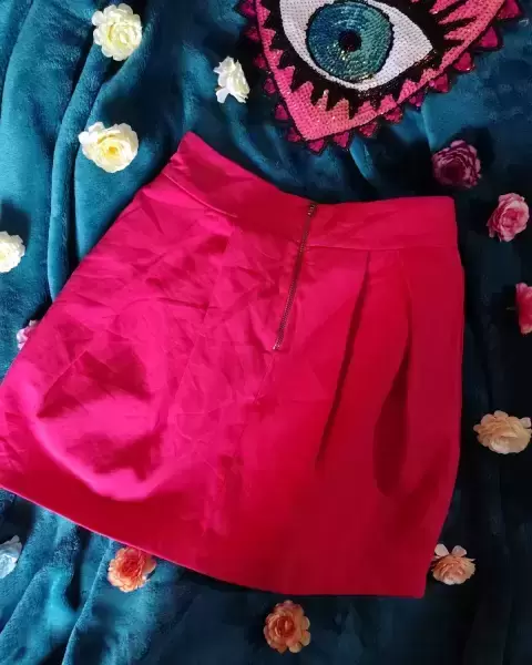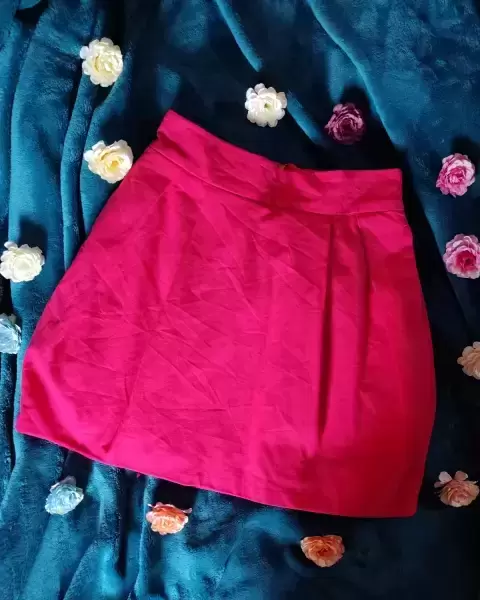 Mini falda bombacha Coral Rosado con cierre en la parte de atras, talla chica, tela gruesa.