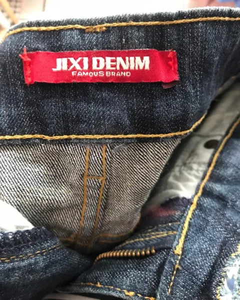 Falda corta de mezclilla con bolsos al frente y atrás, desclavada muy sexy