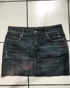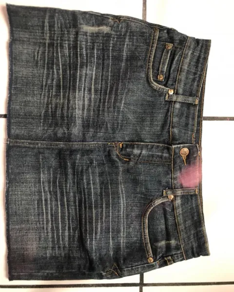 Mini falda de mezclilla. Falda corta de mezclilla con bolsos al frente y atrás, desclavada muy sexy