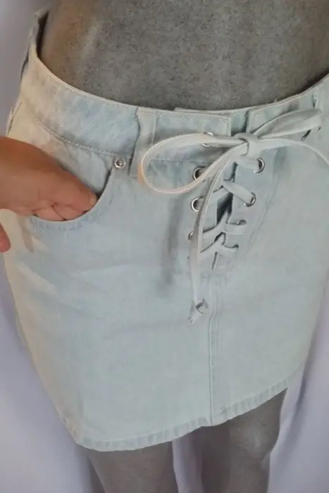 MINI FALDA DE MEZCLILLA CORTA Talla chica. color azul cielo en mezclillatalla chicapregunta todas tus dudas por favor antes de comprarGracias