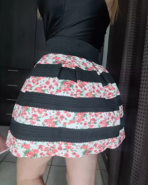 Mini Falda 💕Color negro con estampado de floresTalla MMarca Shasa