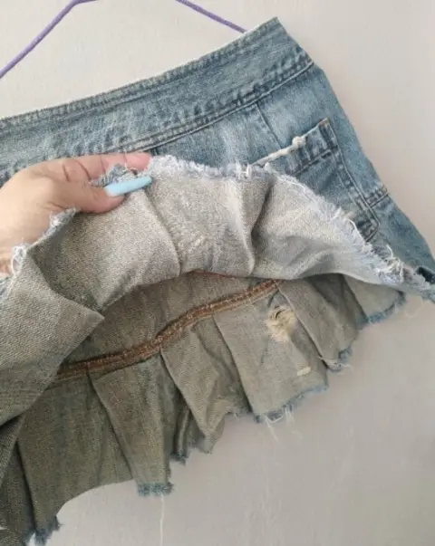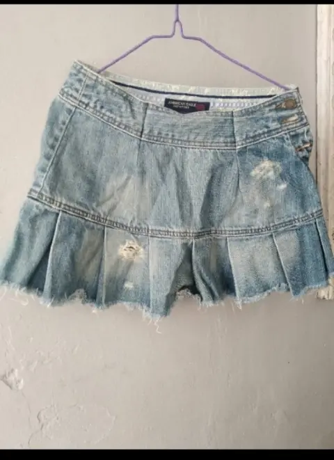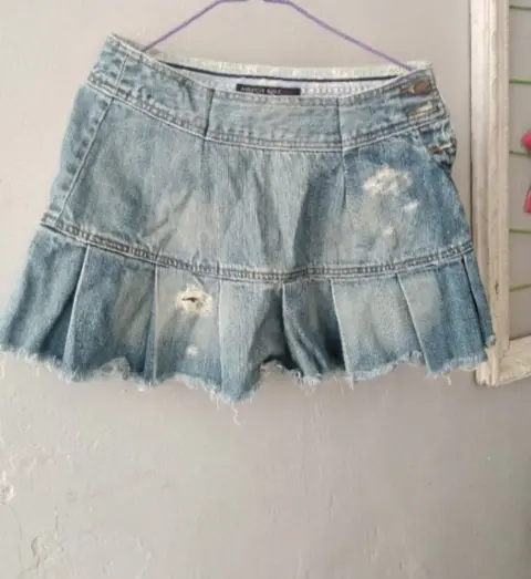 Mini falda de tablones, mezclilla suave, talla 4, marca american eagle, es tipo RBD. Esta en buen estado.