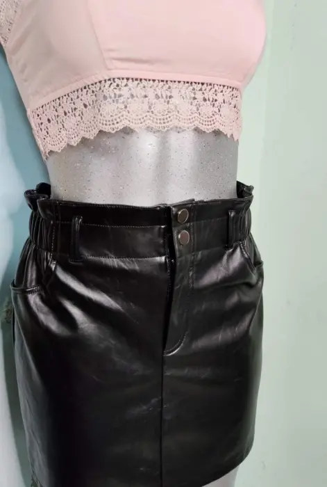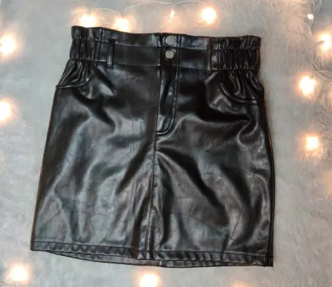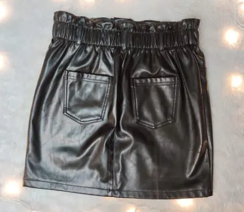 Falda tipo vinipiel 🖤 Talla L Básica y súper cómoda Con resorte, espacio para cinturón, cierre y botones al frente Medidas: Cintura 82cm - Largo 45cm ¡Contamos con sistema de apartado! 🥰 Mándanos mensaje o déjanos un comentario en esta publicación y será tuya