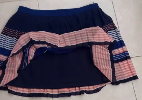 Mini Falda multicolor marca américan Eagle Outfitters 100% poliéster,talla S, 36 cm cintura, 38 cm largo, nueva sin etiqueta. Tiene fondo en color azul.