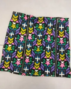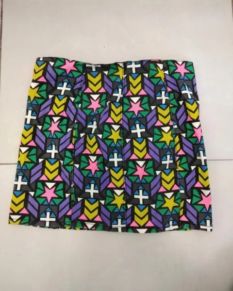 Bonita falda de colores varios, con cierres. Es talla 8, queda a CH o M, dependiendo tu tipo de cuerpo y como te gusta que te queden las prendas.Está super linda y en perfectas condiciones,no tiene ningún detalle. Se encuentra al 100.