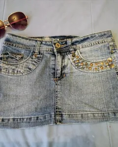 Minifalda de mezclilla. Descripción:En muy buen estado, etiquetada como talla 7 pero en realidad es para alguien muy delgadita, talla 5. De largo mide 27 y 32 de ancho