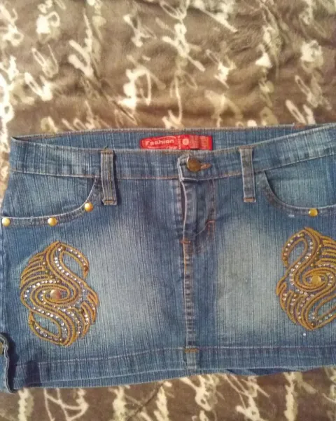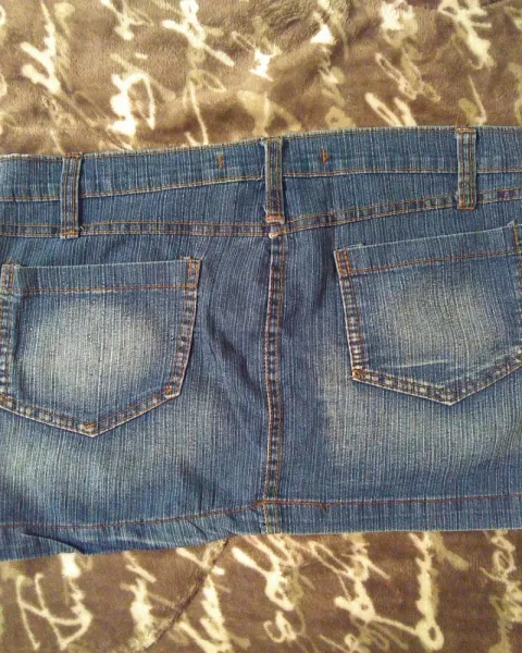 Minifalda de mezclilla poco tiempo de uso en perfecto estado sin detalles que afecten su estética, talla G, corte a la cadera