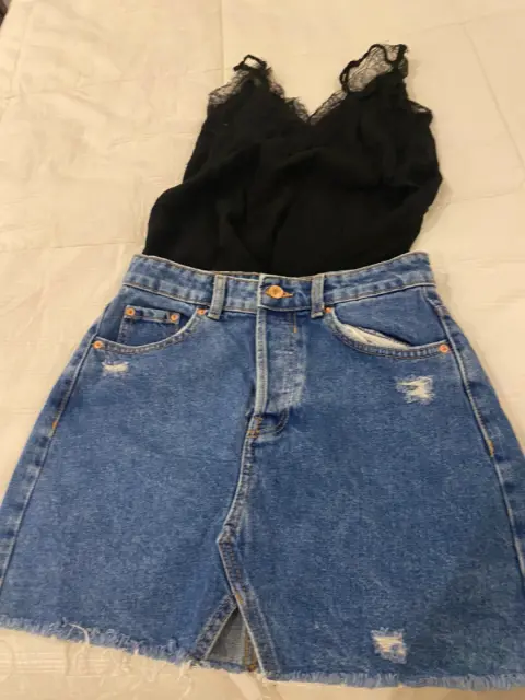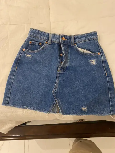 Minifalda mezclilla Bershka. Basico en tu closet mini de mezclilla deslavada lucela con tus tops preferidos
