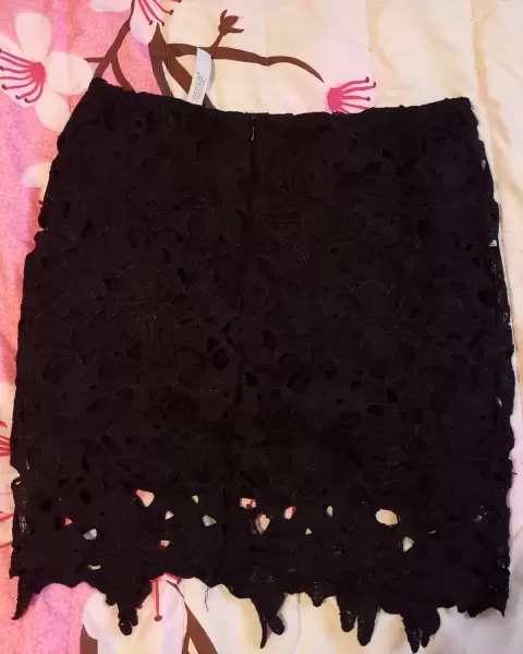 Minifalda negro. Minifalda negro hermosa con diseño de flores en la tela
