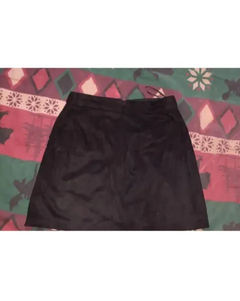 Minifalda tacto gamuza. Elegante y bien construida minifalda con bordado blanco y tela tacto gamuza negra. Completamente forrada, muy linda para el invierno con mallas