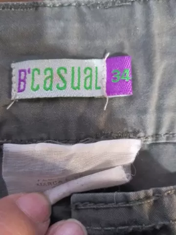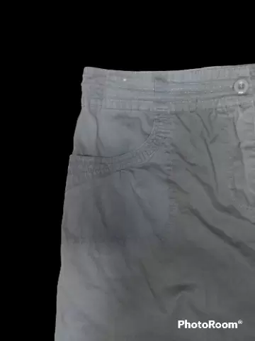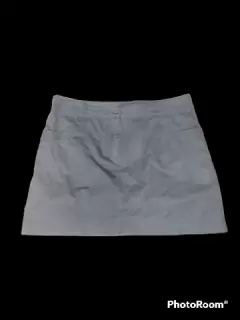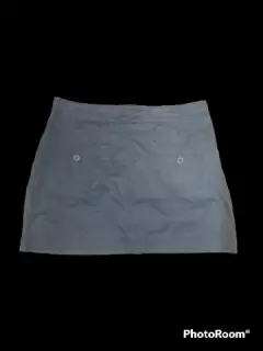De tela tipo gabardina, bolsitas al frente y atrás, es muy cortita