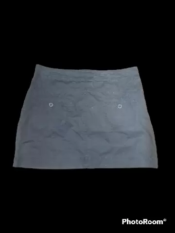 Minifalda verde militar. De tela tipo gabardina, bolsitas al frente y atrás, es muy cortita