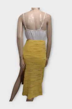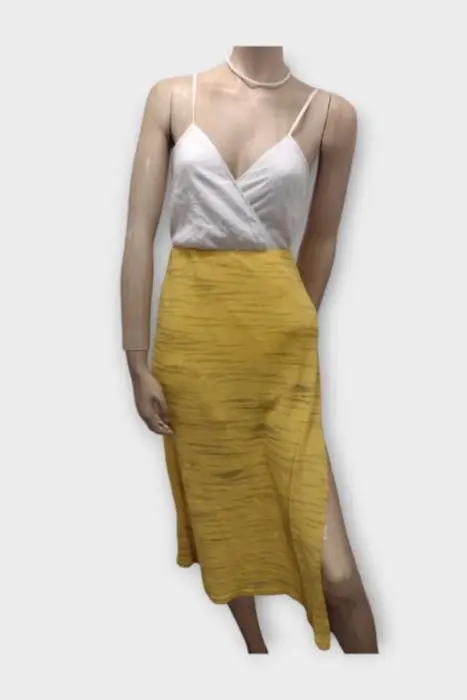 PULL & BEAR Falda Dama Algodón Mostaza SFalda PULL & BEAR 53% Algodón 47% Polyester en color MostazaMarca: PULL & BEAROrigen: MarruecosMaterial: 53% Algodón 47% PolyesterTalla: 26 SEstilo: CasualPatrón: CasualColor: MostazaCierre: ElásticoCintura: 31 cmCadera: 44 cmLargo: 80 cmTiro: AltoRopa de USO en muy buen estado