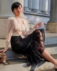 Sandra Mansour falda negra de Organza