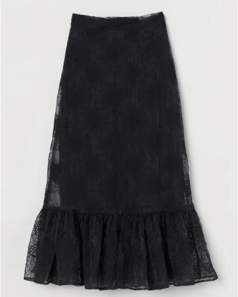 Sandra Mansour falda negra de Organza. Nueva con etiquetaTalla 6Colección Sandra Mansour para H&MFalda a la pantorrilla en organza vaporosa con bordado de girasoles, modelo de talle alto con elástico forrado en la parte posterior de la cintura y ziper oculto en el lateral. Costura y olan ancho en la bastilla.ñ y con forro