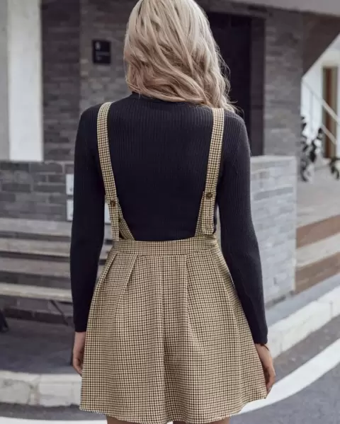 Falda pichi con estampado de cuadros, nueva, colores café y crema. Talla L, largo: 43.5cm cintura: 79cm.Marca SHEIN. Tela poliéster, no elástico.