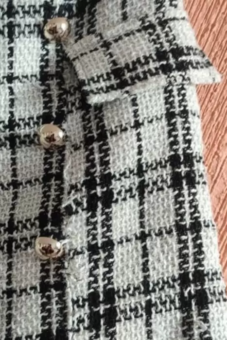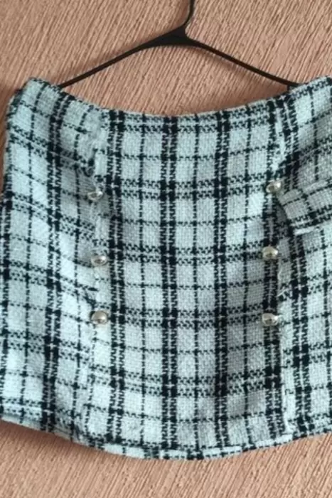 Luce un look moderno y sexy con esta falda corta, excelente para ir de fiesta con tus amigas o un fin de semana casual, en un click!!Marca: SheinTalla: LMedidas: Largo 41.5 cm, Cintura 41Color: Blanco y NegroDetalles: Detalle de botones, detalle en uno de los botones se muestra en la foto.
