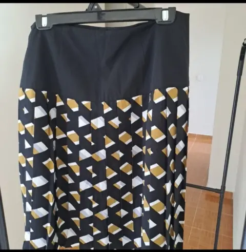 Tableada. Es una falda muy ligera, tableada, y se ve muy hermosa puesta, además de elegante.