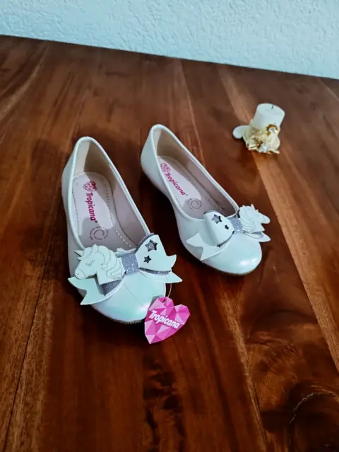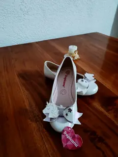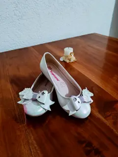 Balerina para niña. Zapatos color blanco perlado con unicornio al frente