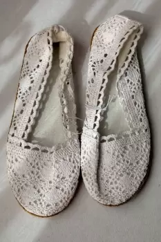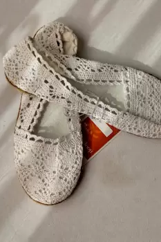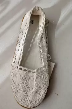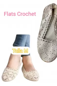 Balerinas tejidas Crochet. Hermosas Flats de crochet, color blanco marfil, Talla M que da Aprox a una talla #5