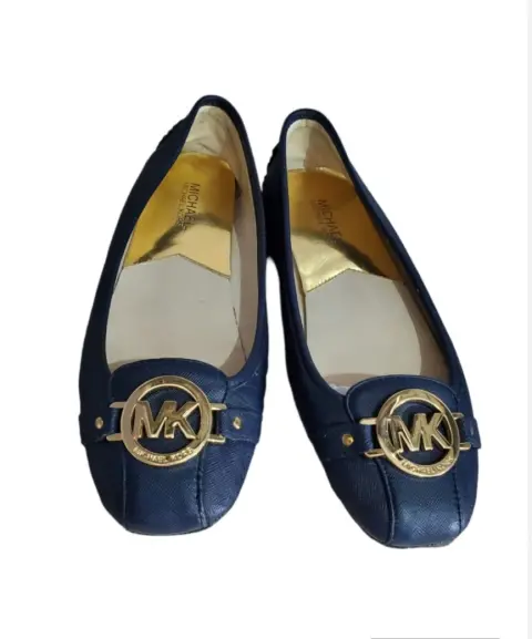 BALLET FLATS MICHAEL KORS. SUPER CÓMODOS Y ELEGANTES MOCASINES MICHAEL KORS- PIEL- PUNTA REDONDA- SUELA ACOLCHONADA- COLOR AZUL MARINO- HARDWARE DORADO- TALLA 6M MEX. 9M USA- PEQUEÑA DECOLORACIÓN EN LAS PUNTAS IMPERCEPTIBLES- SIN CAJA