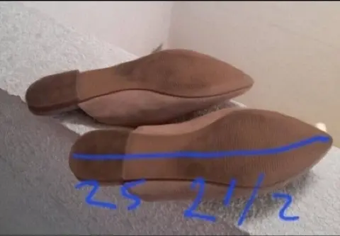 Comodos zapatos color beige con hebilla dorada, talla 2, a 2,1/2,son de gamuza, son usados, traen un pequeño detalle en la parte de enfrente, es una mancha, esta por la hebilla, no está rota,lo demás esta en perfectas condiciones.