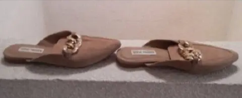 Flat Steve Madden. Comodos zapatos color beige con hebilla dorada, talla 2, a 2,1/2,son de gamuza, son usados, traen un pequeño detalle en la parte de enfrente, es una mancha, esta por la hebilla, no está rota,lo demás esta en perfectas condiciones.