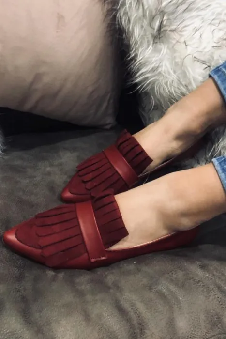 Flats. Flats en material sintético vinipiel y gamuza color vino claro talla #6 nuevos