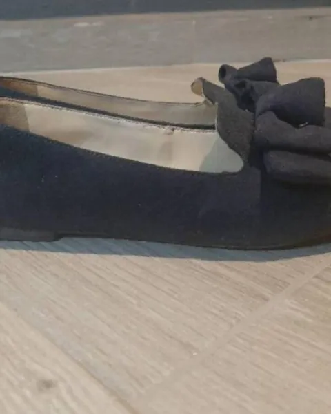 Estos flats NUNCA me quedaron de la parte de atrás, los mande con el zapatero ( por eso la mancha por dentro ) pero no tuvo éxito. Están muy bonitos pero no son para mi son de gamusa azul rey.