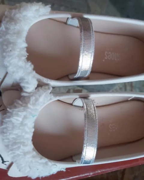 Flats color beige en perfecto estado son de talla 18 cm con tiritas color plata no resbalan muy comodos no estan rrotos