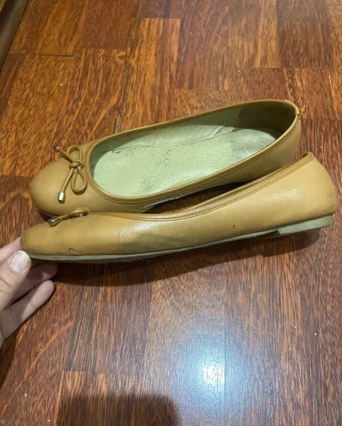 Flats café claro. Están un poco raspadas de atrás, que es como el mayor detalle, se entregan súper limpios